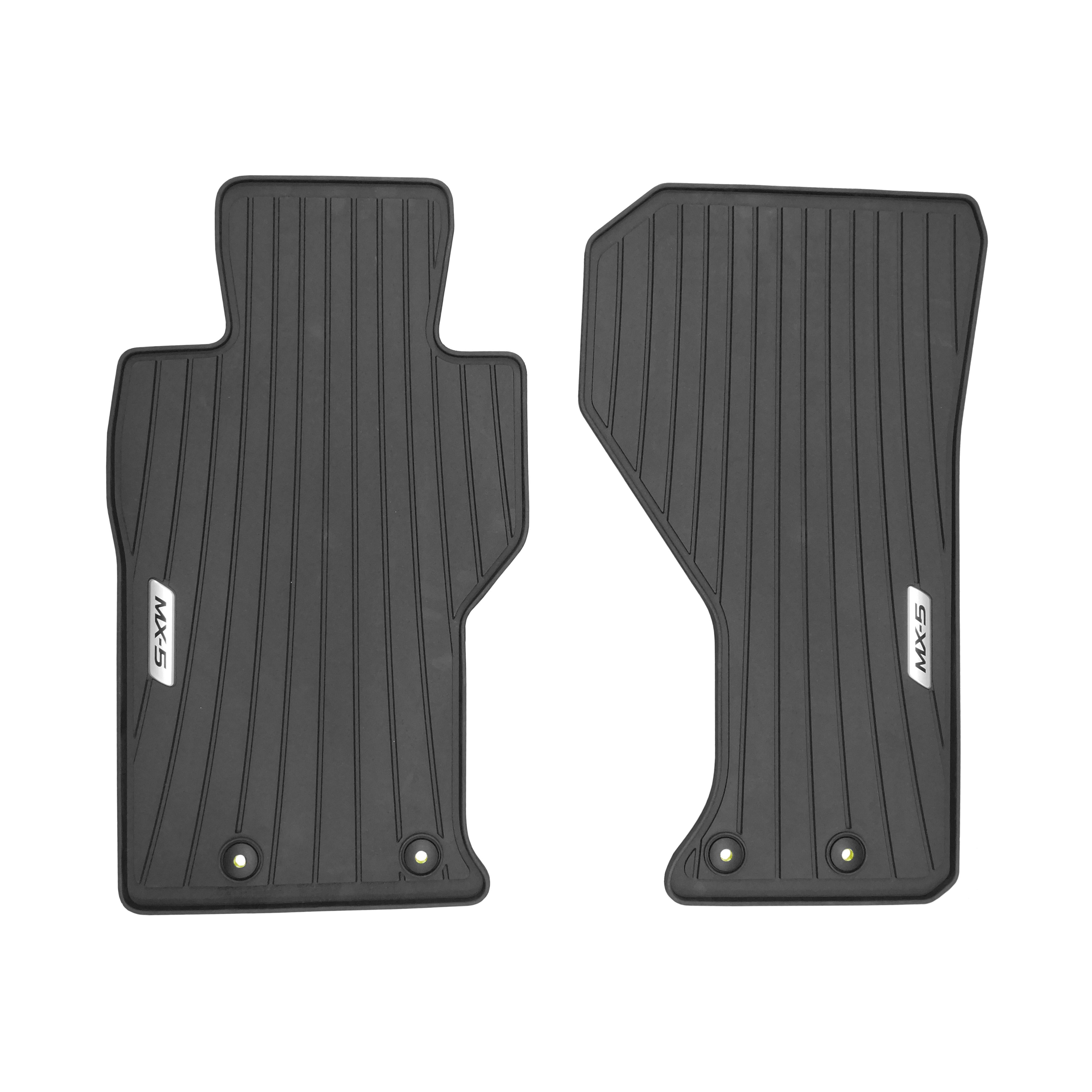 Let your Mazda's MX-5 All-Weather Floor Mats help contain the great outdoors or accidental spills in one convenient place while preserving your interior. Precise vehicle-specific cutting for maximum coverage and protection of your Mazda MX-5's original carpet. Built with deeply sculpted channels to trap and withstand any material that comes through the door. Mazda's craftsmanship is engineered for all weather conditions, ensuring they will stand strong even against harsh temperatures.